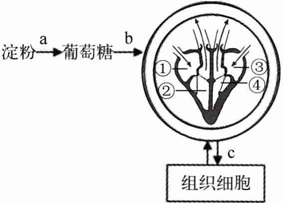 (4)葡萄糖经过过程 c 进入组织细胞,被氧化分解,为人体各项生命活动提供