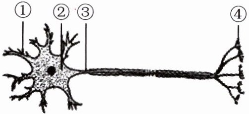 9. 下图是神经元和神经纤维的结构模式图,图中代表树突和神经末梢的序号分别是(