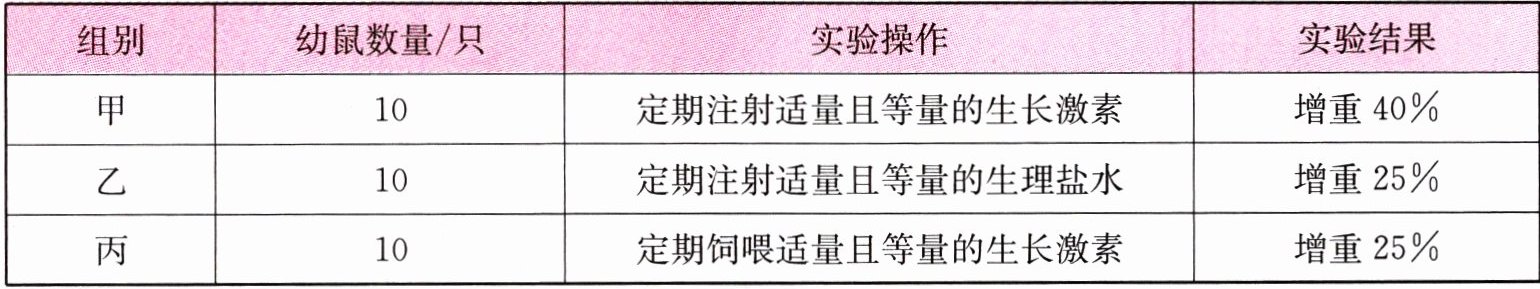12. 生长激素是一种蛋白质类激素。某校生物学兴趣小组的同学为探究生长激素的作用,利用大小相同且生长状况相似的同种健康幼鼠 30 只进行相关实验,实验操作和结果如下表所示。下列分析中错误的是(