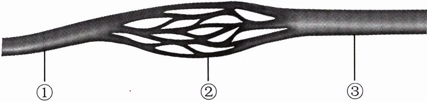 7. 下图为人体内三种血管示意图,血流方向为①→②→③。根据三种血管内血流速度由快到慢排序依次是(