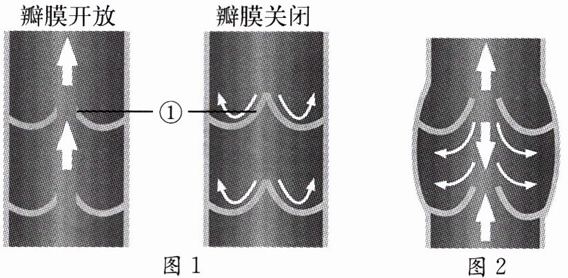 的作用。(2) 小明的爷爷患有下肢静脉曲张,其瓣膜功能受影响(图 2 所示),使得血液在