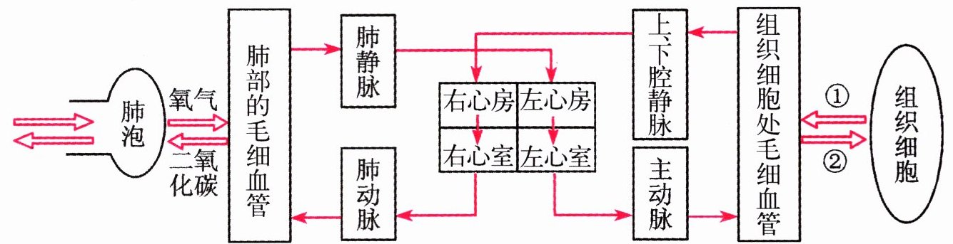 循环路径。(2)在肺循环中,血液经过肺泡周围毛细血管后,由