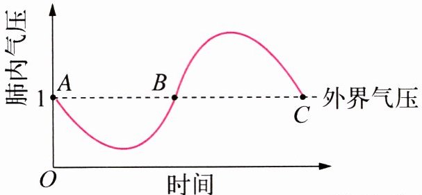 12. 下图是某人在一次平静呼吸过程中肺内气压的变化曲线图。下列叙述中错误的是(