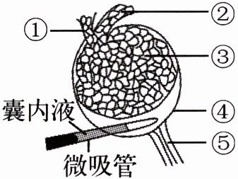 11. 下图为微穿刺法示意图。微穿刺法是利用显微操作仪将微细玻璃管插入肾小囊腔中,抽取其中液体进行微量化学分析的方法,一般用来诊断与肾脏相关的疾病。下列叙述中错误的是(