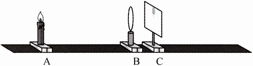 有同学设计了一个模拟眼球成像的实验,如下图所示。在 A 处点燃蜡烛,BC 距离固定不变,在 C 处立一张白纸板,A 处蜡烛在适当位置时,便成像在白纸板上。如果 B 处换成倍数较大或较小的双凸透镜,则白纸板上的像变得不清晰。请据图回答问题。
