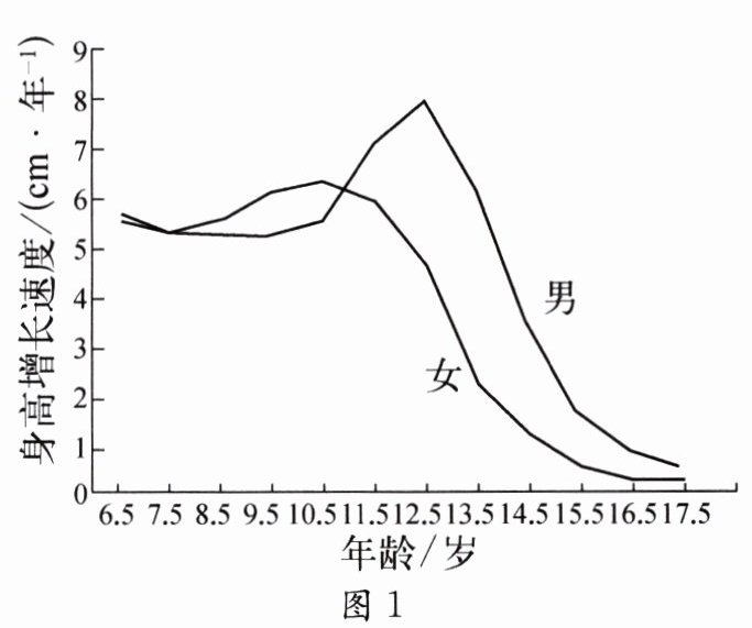 (1) 分析图1中的曲线可知,男生比女生进入青春期