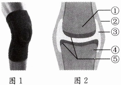 4. 图 1 所示的运动护膝可依靠紧实的包裹增加膝关节的牢固性,避免膝关节受伤。护膝的作用类似图 2 所示的关节结构中的(