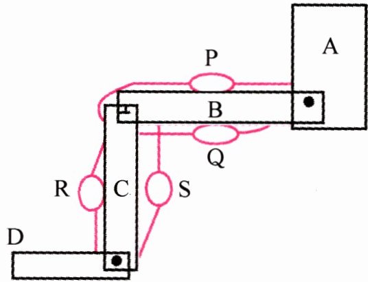 下图是人体下肢活动模型示意图,P、Q、R、S 是表示人体结构的气球,A、B、C、D 是表示人体躯干和下肢的木块,它们之间均由螺丝相连。请据图回答问题。