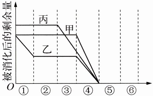 4. 下图为食物通过人体消化道时,淀粉、脂肪和蛋白质在消化道的各部位被消化程度的曲线图(消化道各器官用①~⑥表示)。下列叙述中错误的是(