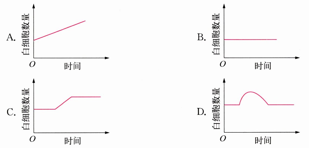 26. 医生对徐阿姨的擦伤处进行消炎治疗,没过多久她就痊愈了。下图中,能正确表示她体内白细胞数量变化的是(
