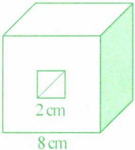 如图,一个棱长 8 厘米的正方体,在它前面的中心位置画一个边长 2 厘米的正方形,再由正方形向对面挖一个长方体洞,剩下物体的表面积是多少平方厘米?