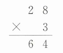 $\begin{array}{r} 28\\ ×3\\ \hline 84\end{array}$