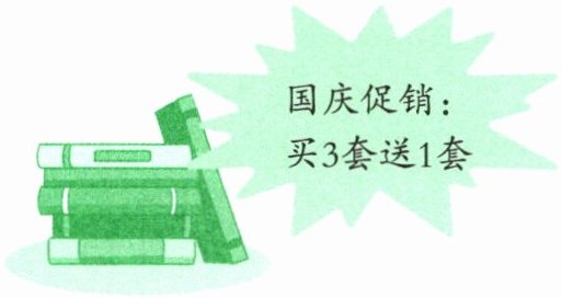 买$8$套,买$3$套送$1$套,$8÷(3+1)=2$,即送$2$套,所以只需付$8 - 2=6$套的钱。