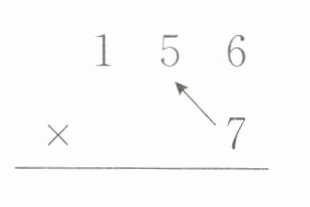 在竖式乘法中,计算$156×7$时,分解计算为$6×7 = 42$(个位),$50×7=350$(十位)。