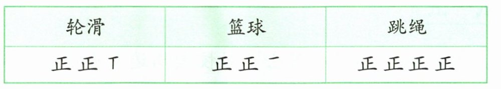 跳绳:正正正正,即$4 × 5 = 20$人。