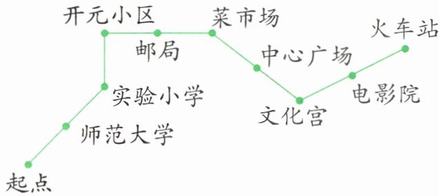 答案:师范大学到实验小学1站,实验小学到开元小区1站,开元小区到邮局1站,邮局到菜市场1站,菜市场到中心广场1站,中心广场到文化宫1站,共6站。