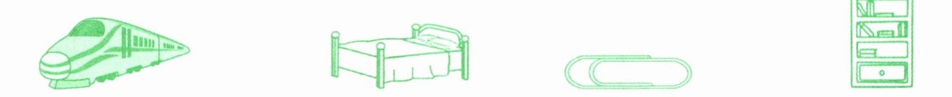 根据生活实际和所学长度单位知识,高铁每小时行驶速度快,用“千米”;床的长度用“米”;回形针较短,用“毫米”;书架高度用“分米”。
