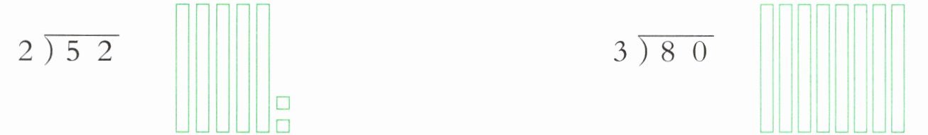 | $88÷4= 22$ | $76÷3= 25……1$ | $96÷7= $(