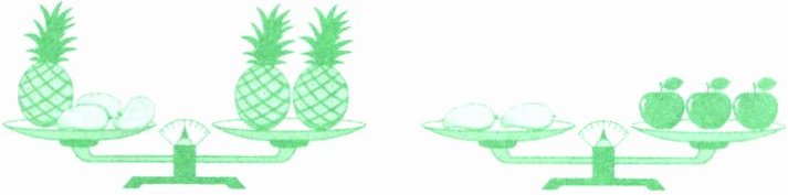 5. 如图,同一种水果的质量都相等,一个菠萝的质量相当于(