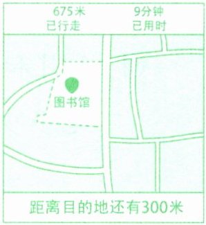 3. 周末王老师步行去图书馆,右图是途中手机地图软件的提示。如果王老师每分钟步行的米数不变,那么5分钟内他能否到达图书馆?