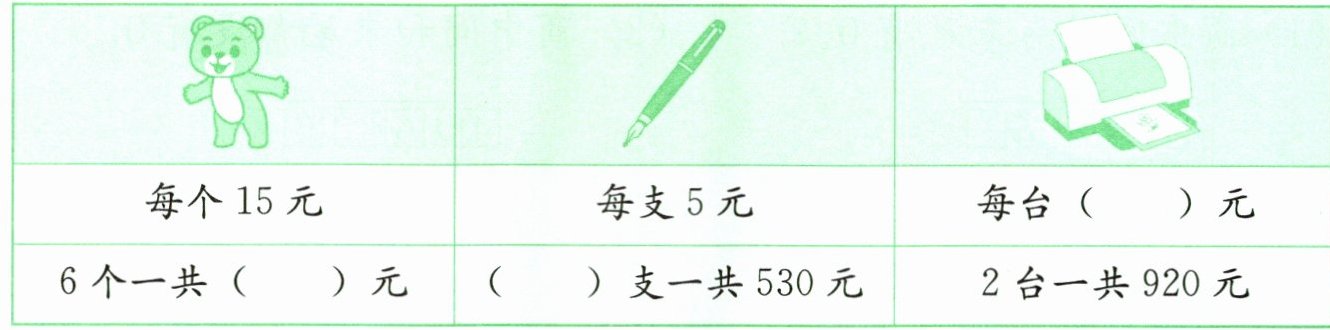 打印机2台一共920元,每台价格为:920÷2=460(元)。