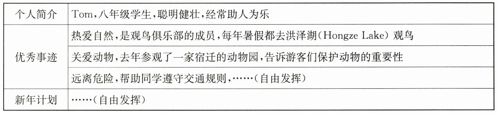 Our classmate Tom won the "Most Beautiful Teenager Award" this year. He is a Grade 8 student. He is smart and strong. He is always ready to help others. Tom loves nature. He is a member of the Birdwatching Club. Every summer vacation,he goes to Hongze Lake to watch birds. He also cares about animals. Last year,he visited a zoo in Suqian. He told visitors the importance of protecting animals. He also helps his classmates follow traffic rules to stay safe. He believes staying away from danger is important.