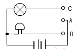 如图13 - 2 - 3(a)所示是某工厂数控机床上关键部件的控制盒,控制盒内有三个接线柱$A$、$B$、$C$以及指示灯和电铃各一只。当连接$A$、$C$时,灯亮、铃不响;当连接$A$、$B$时,铃响、灯不亮;当连接$B$、$C$时,灯不亮、铃不响。请根据上述描述,在虚线框内画出符合要求的电路图。