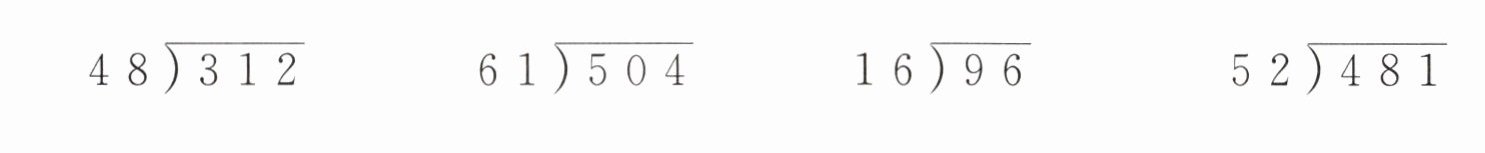 $156÷39= \quad545÷63= \quad195÷39= $