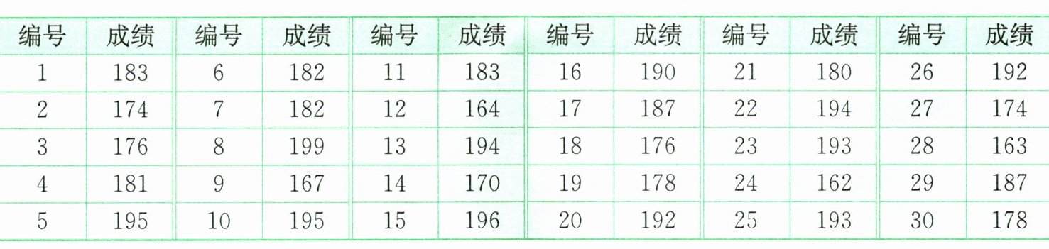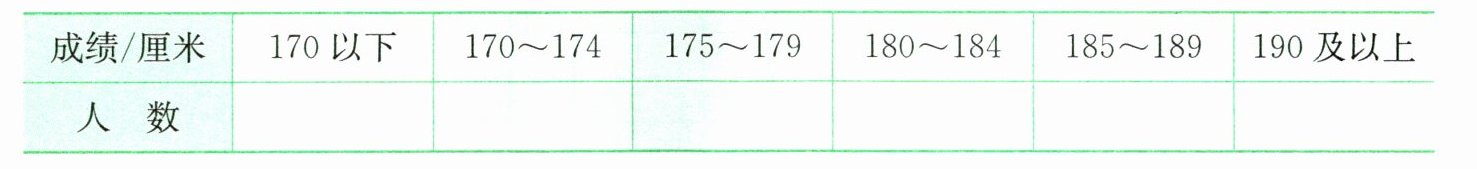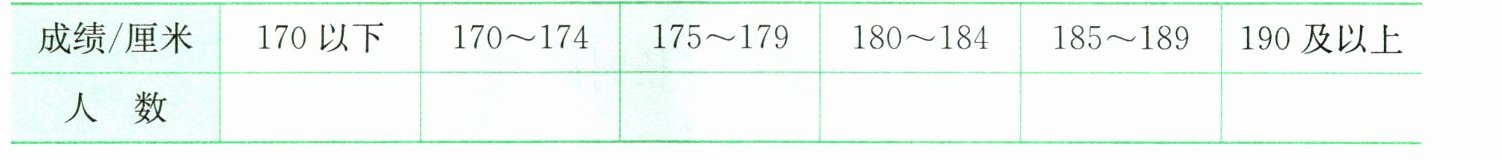 @@答: 185 ~ 189厘米有2人,170~ 174厘米有3人。答: 190及以上成绩段范围内的人数最多,185~189成绩段范围的人数最少。