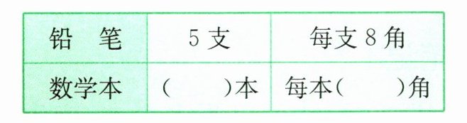 的价钱,再根据“8 本数学本”和“每本 9 角”算出8本数学本