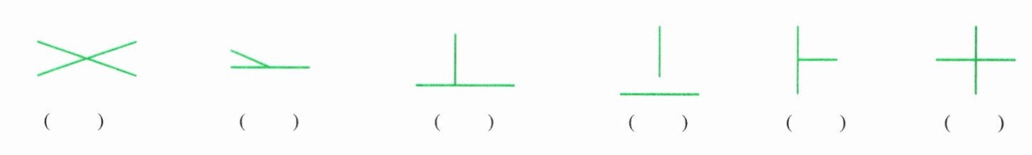 1. 下图中,两条直线互相垂直的在括号里画“√”,不垂直的在括号里画“×”。