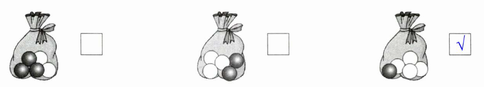 你知道他们从哪个袋子里摸球的可能性最大吗? 在$□$里画“√”。