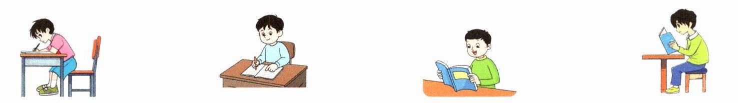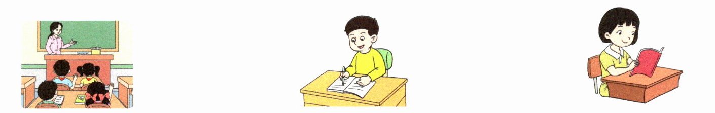 第一幅图中有老师站在讲台前讲解,小朋友们面向老师,坐在课桌前,表现出听课的状态,所以应选③。第二幅图中小朋友坐在课桌前,手持笔在本子上进行书写动作,所以是在写字,应选②。第三幅图中小朋友坐在课桌前,打开书本,双手放在书本上,呈现出读书的样子,所以应选①。