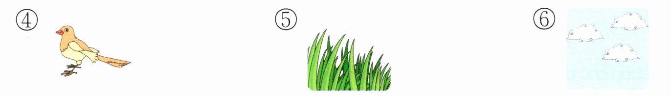 3. 儿歌中提到“画蓝天,画绿草,画红花,再画一只小鸟叫喳喳”,插图①是红花,④是小鸟,⑤是绿草,⑥是蓝天,所以①④⑤⑥打√。