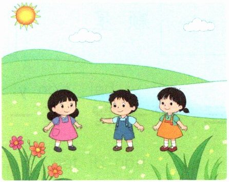 本题可通过观察图片以及对“天”“地”“人”“我”“他”这些汉字含义的理解来填空。从图片中可以看到太阳在上方,代表“天”;草地在下方,代表“地”;三个小朋友在天地之间,代表“人”,从左到右第二个小朋友对自己指“我”,对右边小朋友指“他”。所以依次应填①④②⑤③。