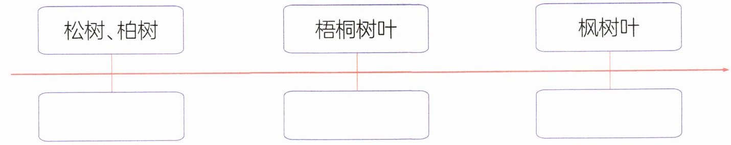 3. 文中“松树和柏树……像风雨中站岗的战士”对应③;“梧桐树叶……像美丽的蝴蝶”对应①;“枫树叶……像火红火红的云彩”对应②。