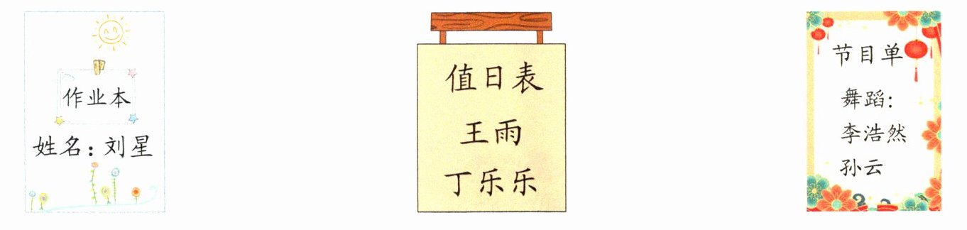 答案:在“作业本 姓名:刘星”中圈出:作、业、本、姓、名、刘、星;