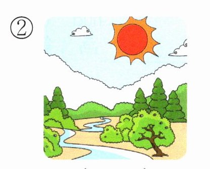 3. 下面哪一幅图片画的是“bái yún duì hóng rì”的景象呢?在正确答案的括号内画“√”。