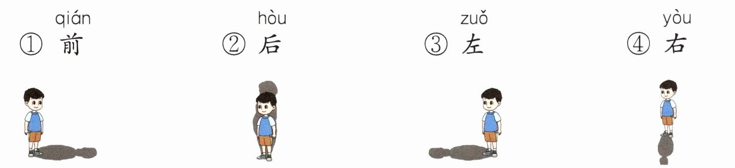 1.(语文要素)结合课文内容和图片想一想:影子在“我”的哪个位置?填一填。
