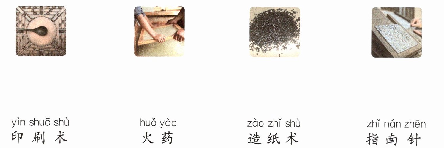六、(中华文化)你认识下面我国古代的四大发明吗?连一连。