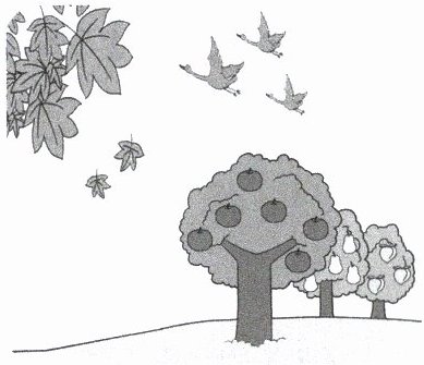 蓝蓝的,往南飞。黄了,从树上落下来。果子熟了。