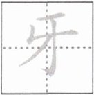 1. “牙”共4笔,笔顺是横(一)、竖折(𠃑)、竖钩(亅)、撇(丿),在“牙”字中描出竖折笔画。