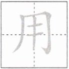 2. “用”共5笔,笔顺是撇(丿)、横折钩(𠃌)、横(一)、横(一)、竖(丨),在“用”字中描出横折钩笔画。