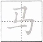3. “马”共3笔,笔顺是横折(𠃍)、竖折折钩(𠄎)、横(一),在“马”字中描出竖折折钩笔画。