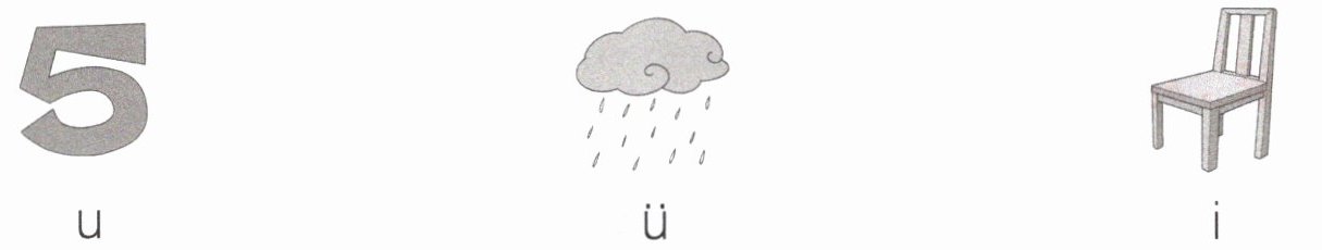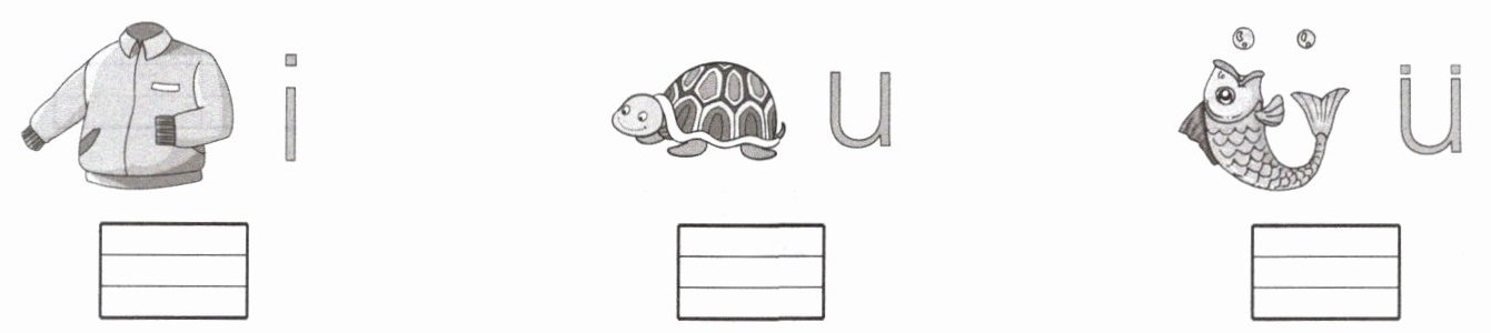 一、用笔在图中描出“i、u、ü”,并在四线格里写一写。