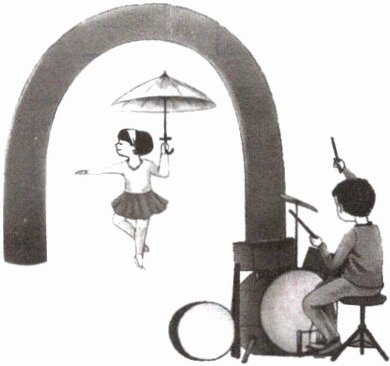 在对应图片上用笔将形状与“d”相似的左下半圆处描出,并读“左下半圆 d d d”;在伞柄朝上形状处描出“t”,并读“伞柄朝上 t t t”;在门洞形状处描出“n”,并读“一个门洞 n n n”;在小棒形状处描出“l”,并读“小棒小棒 l l l”。