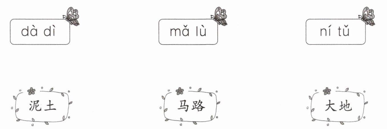 答案:dà dì—大地;mǎ lù—马路;ní tǔ—泥土