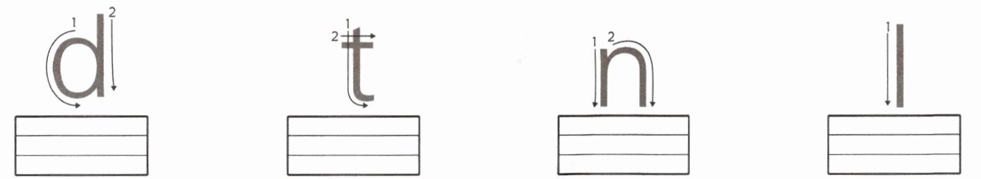 答案:1. “d”的笔顺:左半圆,竖;书写在四线三格的中下格。
