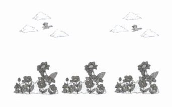 1. 观察插图1,图中有小鸟在天空飞,所以第一空填“小鸟”,第二空填“天上”。