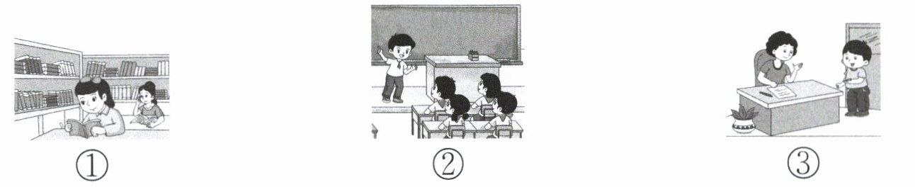 1. 题目中①氵三点水、②讠言字旁、③宀宝盖头,搭配均正确,无不正确选项(可能题目存在误差,按常规内容判断均正确)。2. “更上一层楼”出自王之涣《登鹳雀楼》,上一句是“欲穷千里目”,选③。3. 场景①是图书馆需安静,②是课堂发言可能需要大声,③是师生对话正常音量,选②。